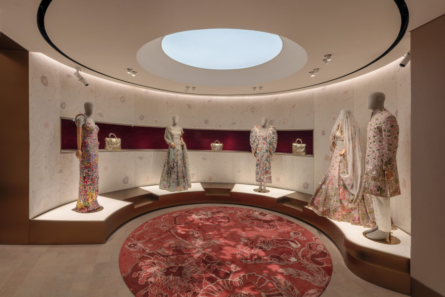 Our lighting design reimagines Maison Rahul Mishra at Fort, Kala Ghoda not as a backdrop, but as a museum of craftsmanship. From the hush of the introductory sketch gallery to the soaring finale of metal birds in flight, each lighting moment is finely curated to align with the store’s rhythm and soul. Drawing from Rahul Mishra’s botanical and avian motifs, and Rooshad Shroff’s creative vision, the design aims to frame each couture piece as living art while evoking the intimacy of a gallery and the drama of a stage. Layers of ambient and accent lighting guide the visitor through this immersive journey, balancing clarity with introspection.